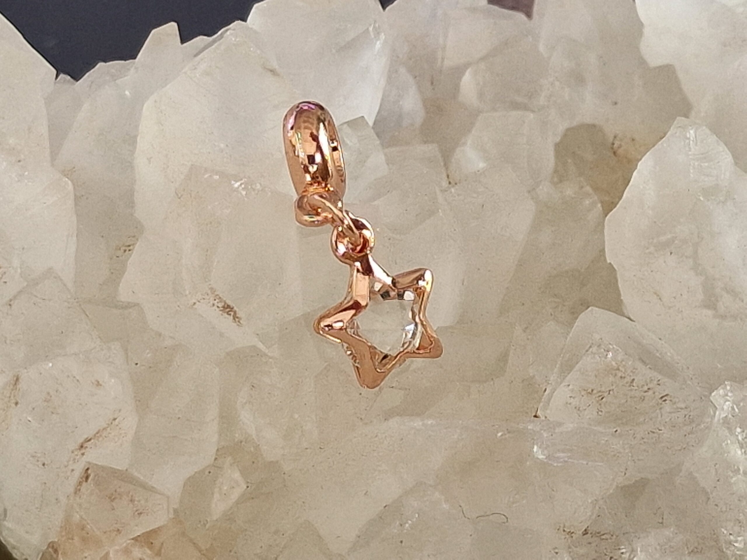 Bijou girly en étoile rose et strass blanc, monté sur perle en alliage rose, pour sublimer vos lacets ou à enfiler sur un bracelet.