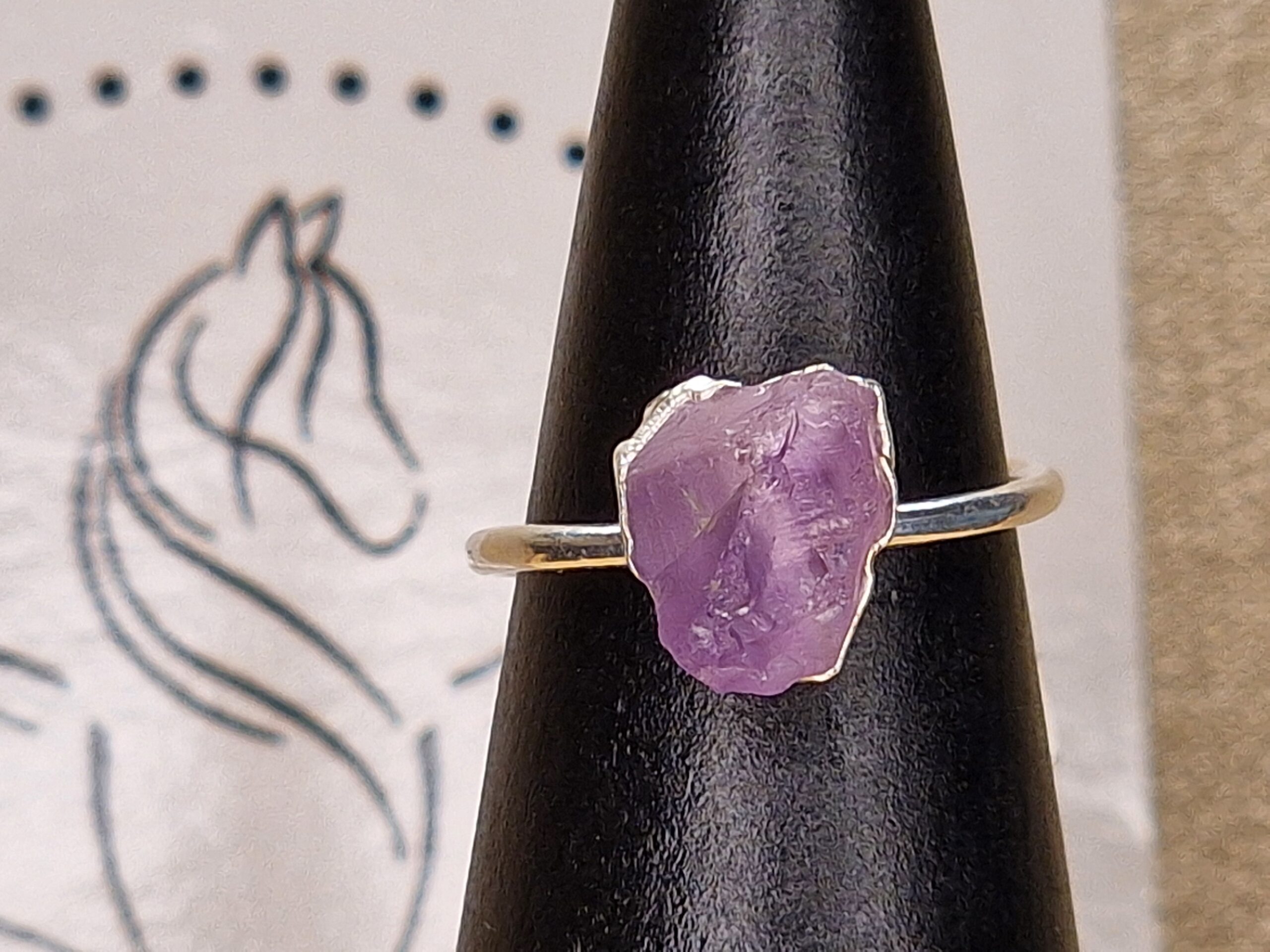 Bague ajustable en argent 925, ornée d’une pierre drusy améthyste aux reflets violets scintillants. Élégance mystique et éclat naturel au quotidien.