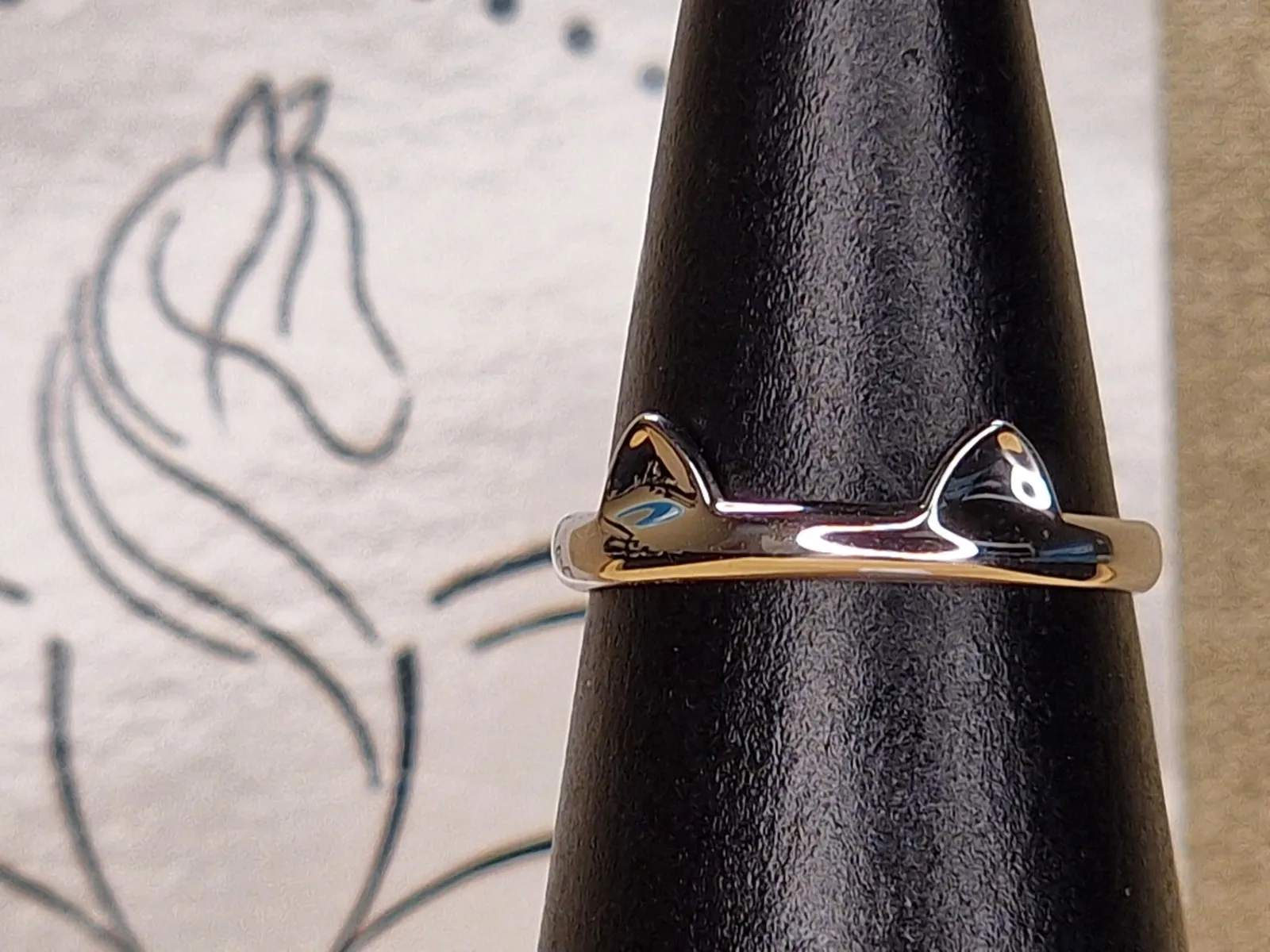 Bague ajustable en Argent 925 ornée de deux petites oreilles de chat. Un bijou discret à l’élégance féline.