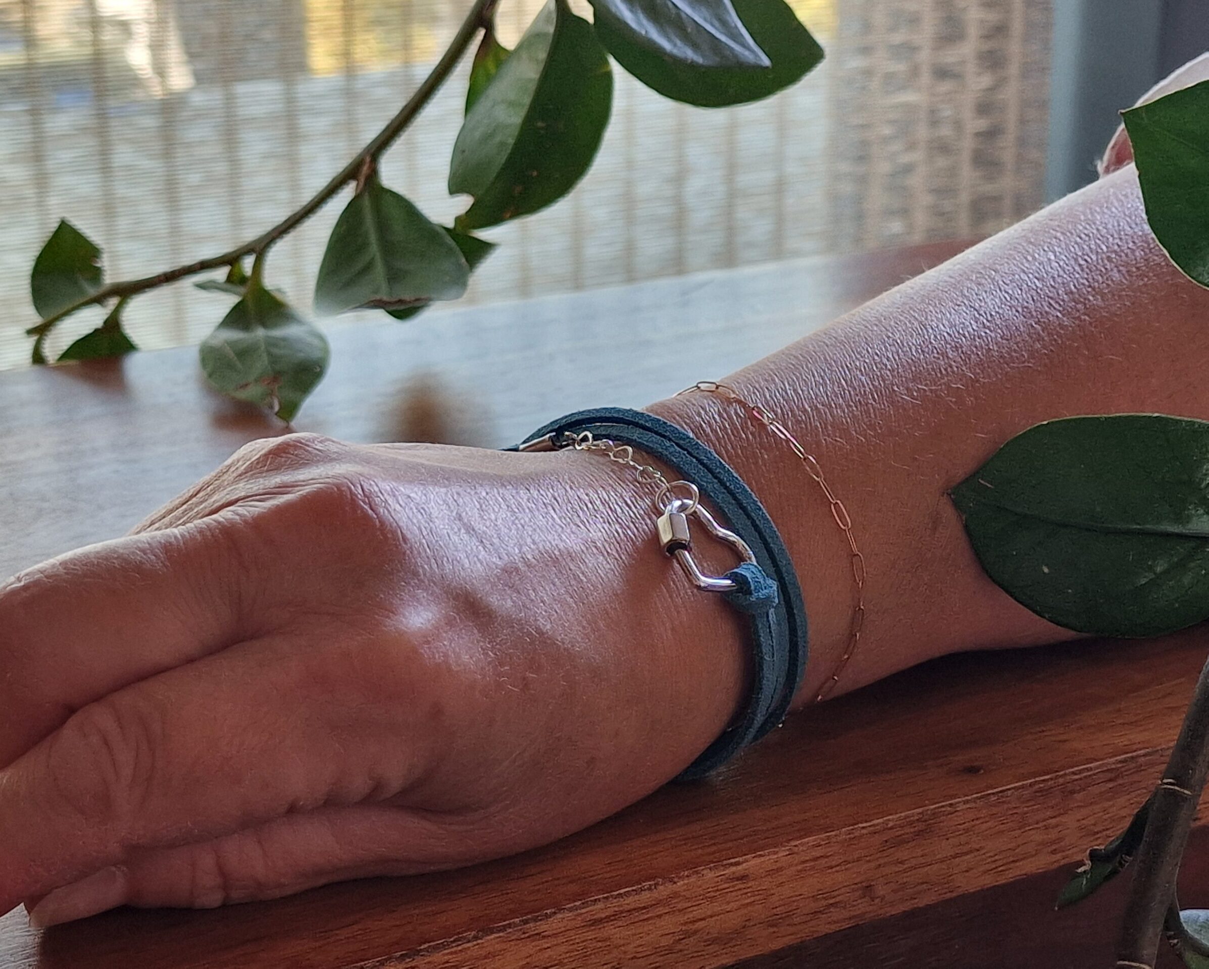 Bracelet double tour pour femme, en faux daim coloré, avec pendentif Cœur argenté et petite chainette cœur. Un bijou doux et féminin, décliné en 15 coloris pour exprimer chaque personnalité.