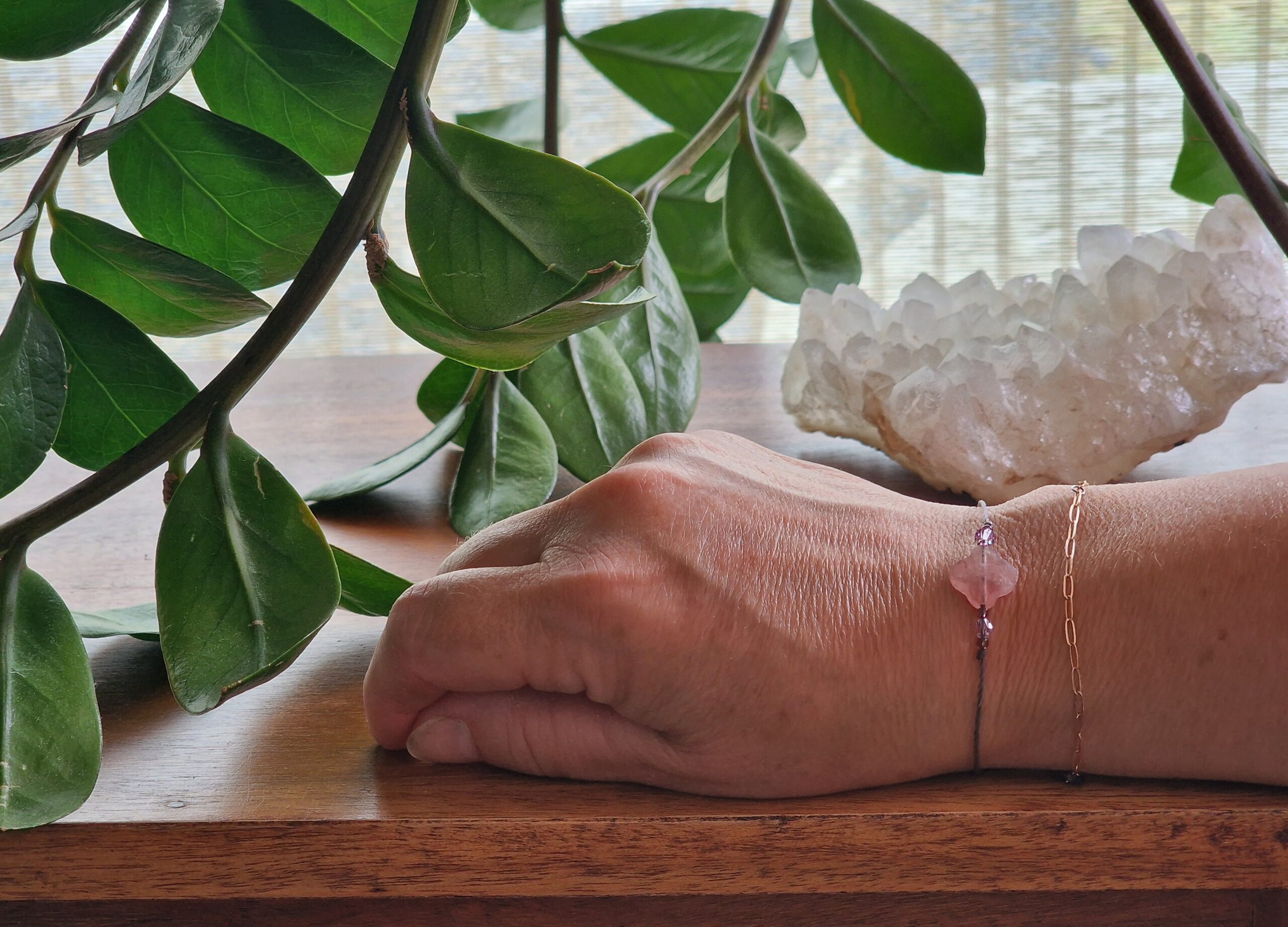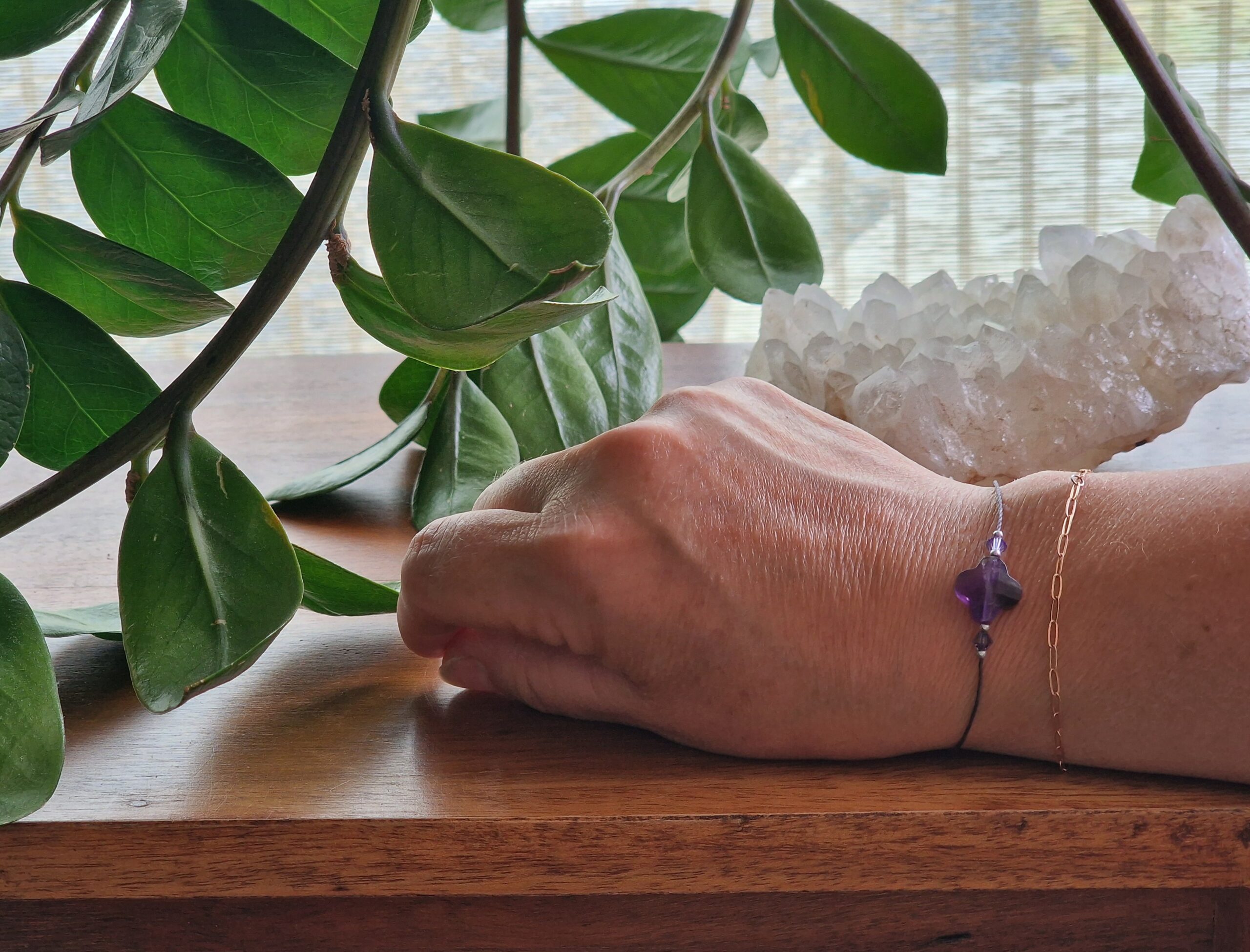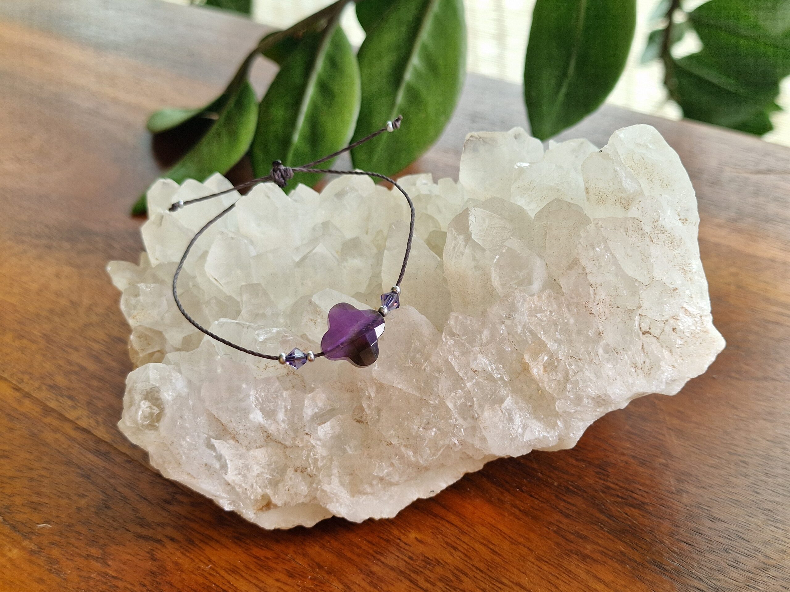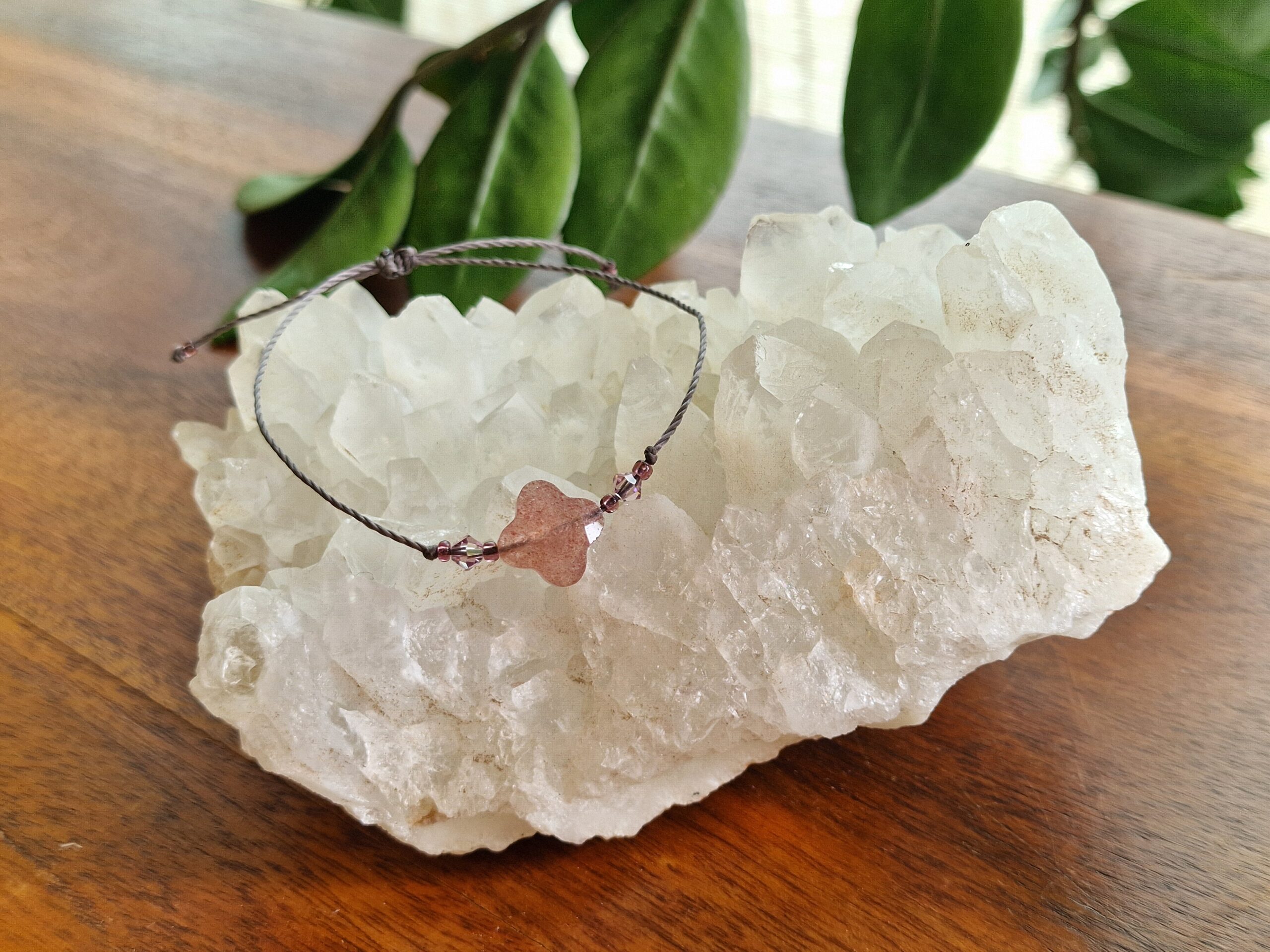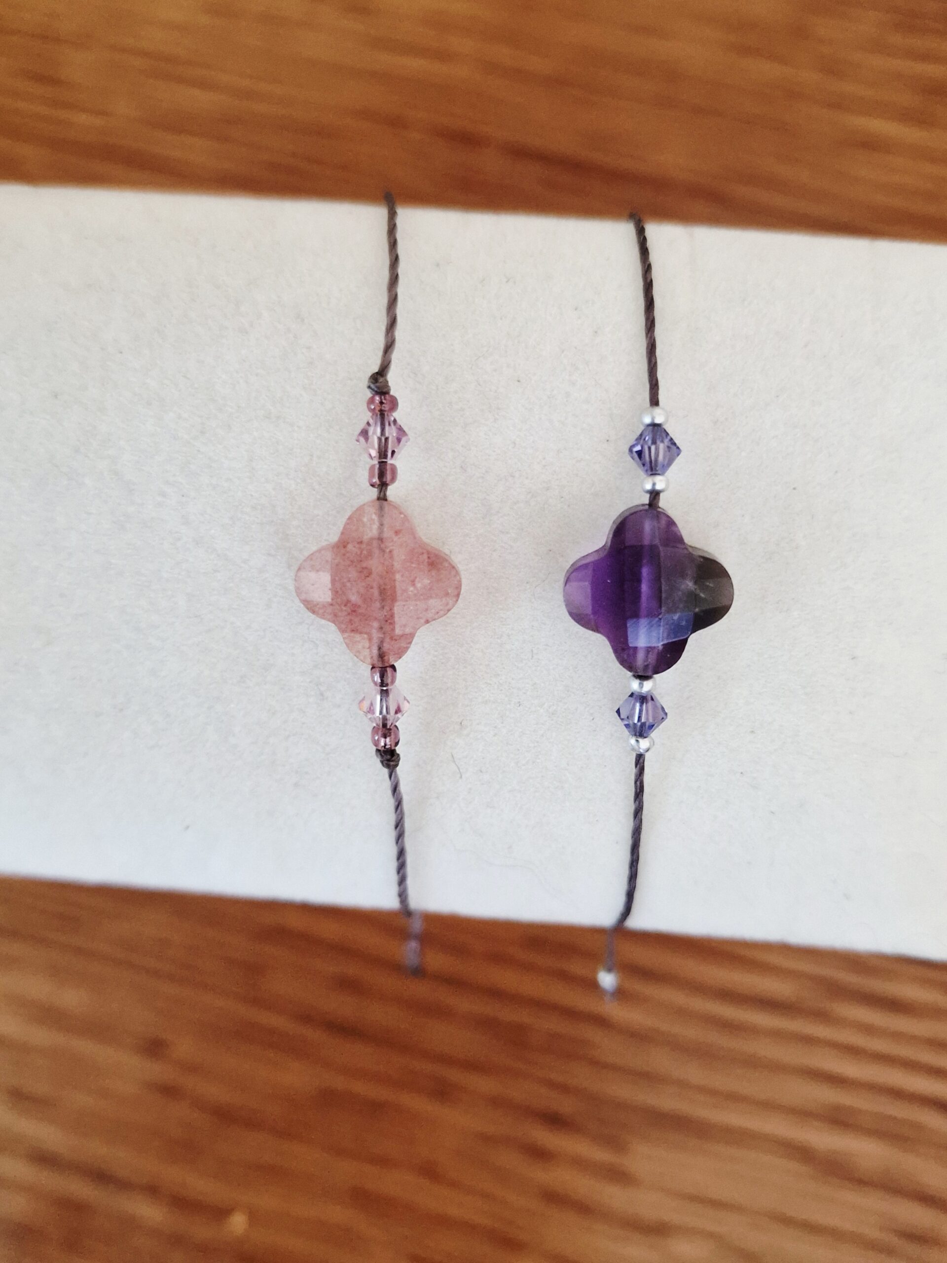 Bracelet ajustable “Trèfle” en pierre gemme, sublimé par des perles Swarovski — une création porte-bonheur aux finitions délicates.